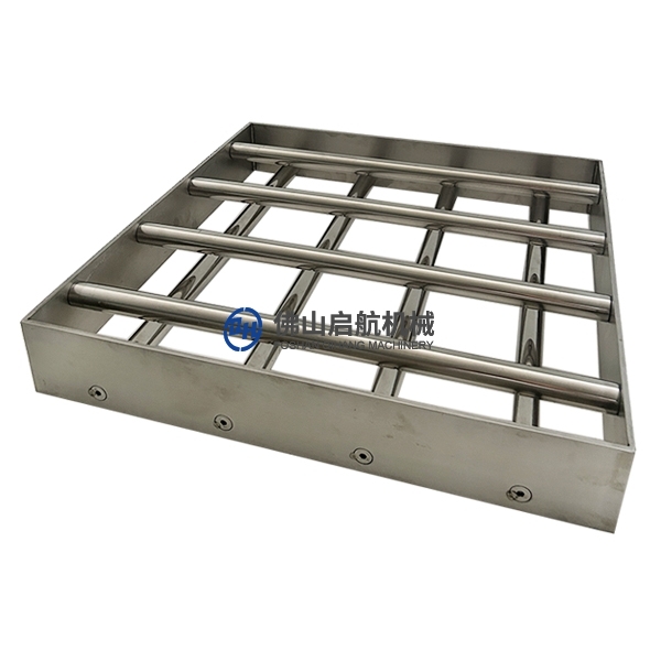 本产品是由磁棒根据不同的使用要求按照不同的形状尺寸,通过不锈钢板固定成型。磁力架放置固定在料斗、出料口、输送管道等处,当物料流经磁力架时,含铁杂质就会被牢牢吸附在磁棒上,从而实现净化物料、保护运转的效果。磁力架可以用来过滤粉体、颗粒、液体、浆料、气体物料中夹带的细小铁杂质。 适用于陶瓷、电力、矿业、塑料、化工、橡胶、制药、食品、颜料、染料、电子、冶金、新能源锂电等行业。