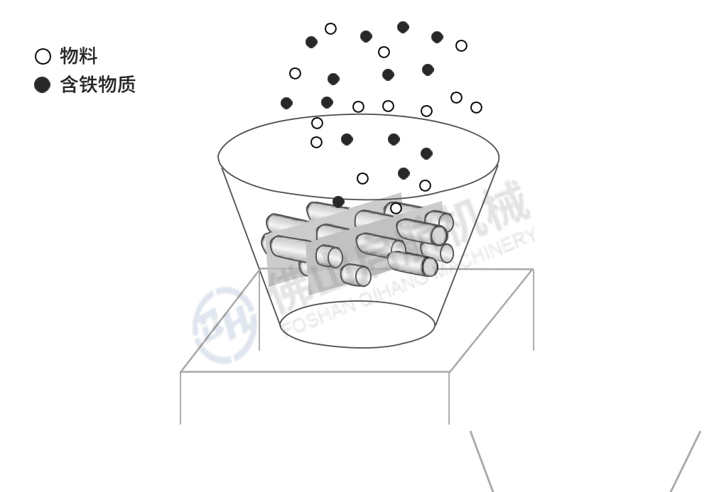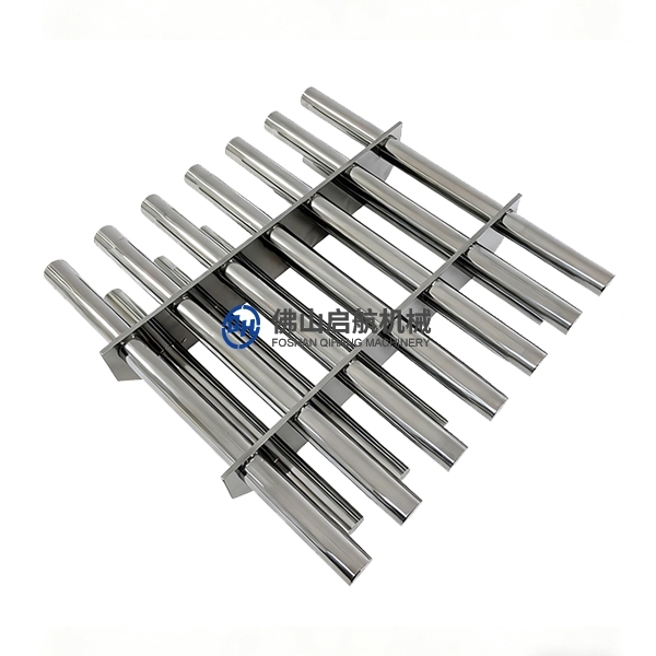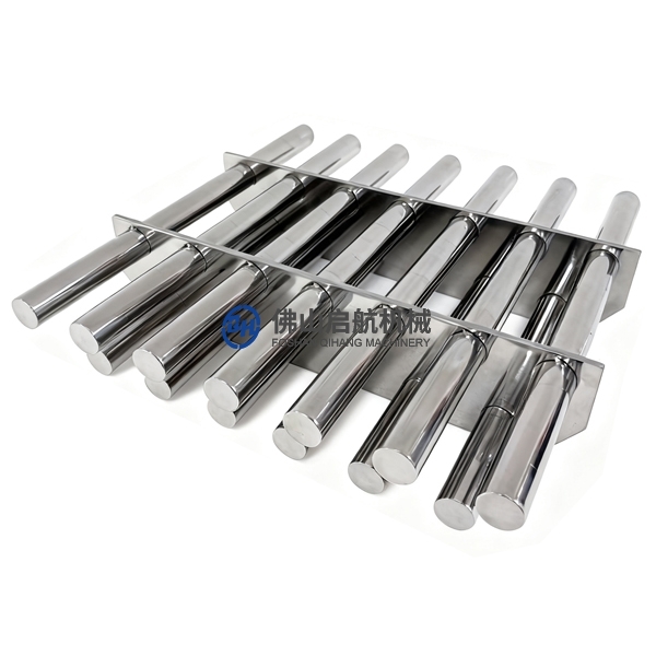 磁棒是采用优质不锈钢管和高B值稀土合金铁硼,并采用特殊的制作方法制作而成可以组合在固定架上,构成磁性过滤器。当含铁的物质通过时,受到磁力棒的吸引,将含铁的物质牢固的吸附在磁棒的管壁上,以保证设备的完好和产品的安全。